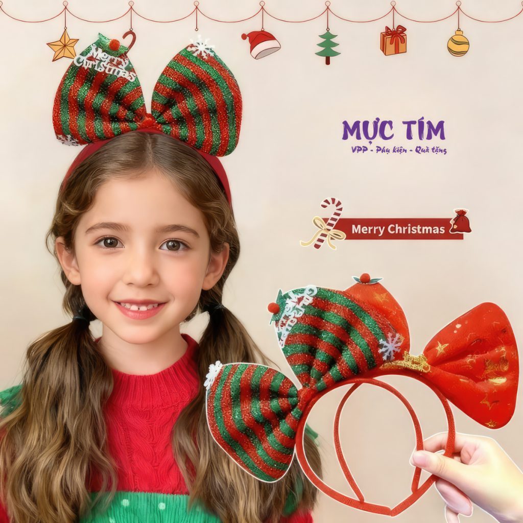 Liên hệCài tóc nơ Noel siêu lung linh – nơ to nổi bật, đính kim tuyến, lá thông,… chuẩn không khí lễ hội Giáng sinh!