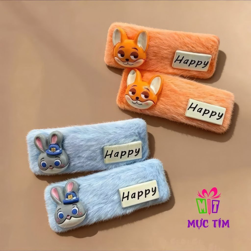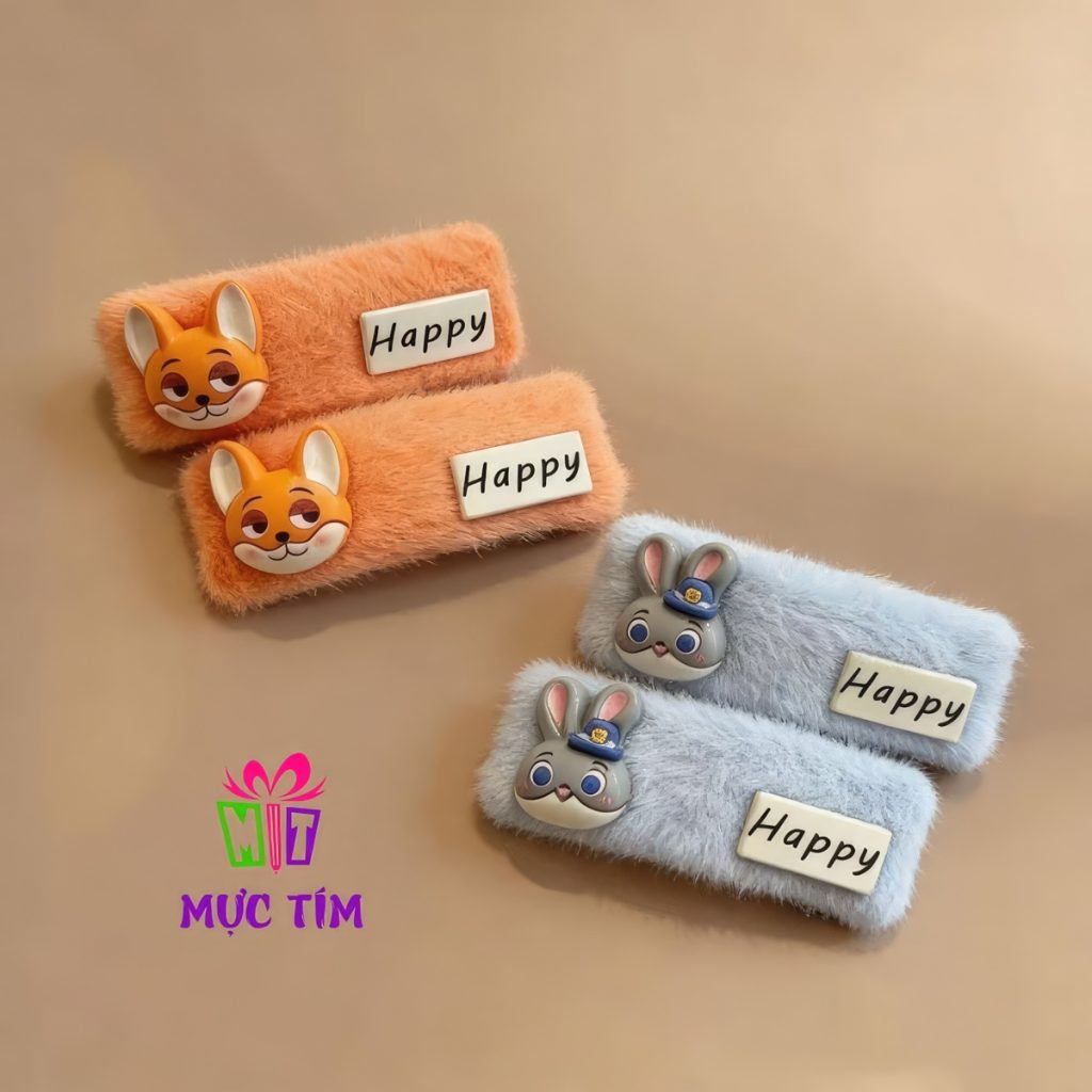 • Kẹp tóc lông mịn hình cáo & thỏ dễ thương